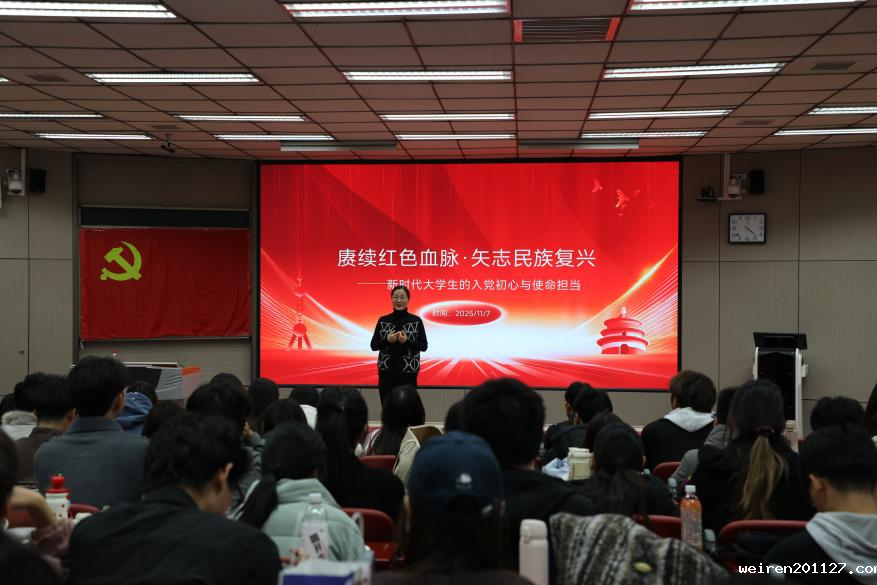 本次党课集中授课内容聚焦党的最新理论成果与方针政策。马克思主义学院王华玲老师以互动讨论为载体,带领大家深入解读党的创新理论内核,助力学员们在思想碰撞中深化理解、精准把握,进一步坚定了听党话、跟党走的理想信念。weiren201127党委副书记刘洋结合时事热点与国内外发展大势展开深度剖析,引导学员们立足宏观视角认清党的历史使命与时代责任,有效激发了大家的爱国热忱与社会担当。