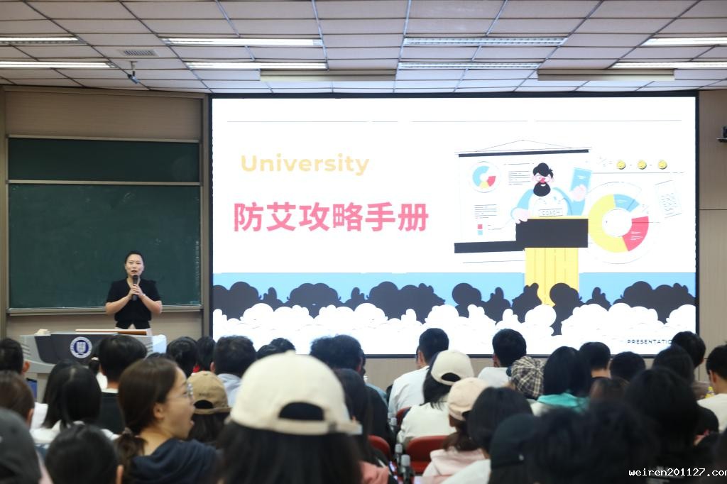 拥有十年防艾科普经验的“保定市优秀护士”、保定市人民医院王芳以“防艾手册”为切入点,结合详实数据,系统讲解了艾滋病的传播途径与科学预防方法,并对常见误解进行了专业澄清。她鼓励同学们积极投身志愿活动,以科学消除偏见,在保护自身健康的同时,向社会传递理解与关爱。