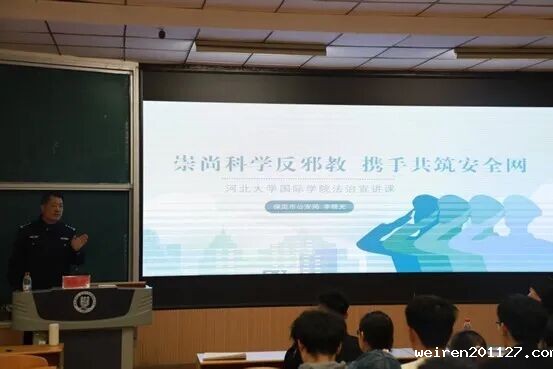 民警李晓光同志对邪教组织的常见手段与危害进行剖析,分享邪教组织的真实案例,帮助同学们树立科学精神,自觉抵制邪教侵蚀,共同维护校园意识形态安全。
