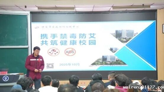 疾控中心刘梓庭同志通过剖析毒品成瘾机制,说明其对社会和个人的双重危害,为同学们构建了完整的防艾知识体系,呼吁同学们树立健康生活方式,提高自我保护意识,共同营造安全健康的校园环境。