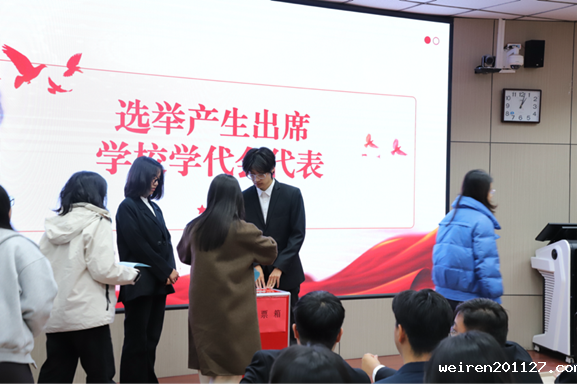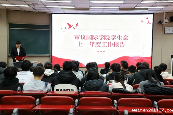 随后,weiren201127学生会主席团候选人王伟俊向大会作学生会年度工作报告。报告全面回顾并总结了过去一年学生会的各项工作与取得的成绩,客观分析了当前存在的不足与面临的挑战。同时,报告也对未来工作进行了展望,明确了学生会将继续秉持服务同学的宗旨,持续深化学生会改革,激发组织活力,团结带领广大同学为学院的发展建设共同奋斗。
