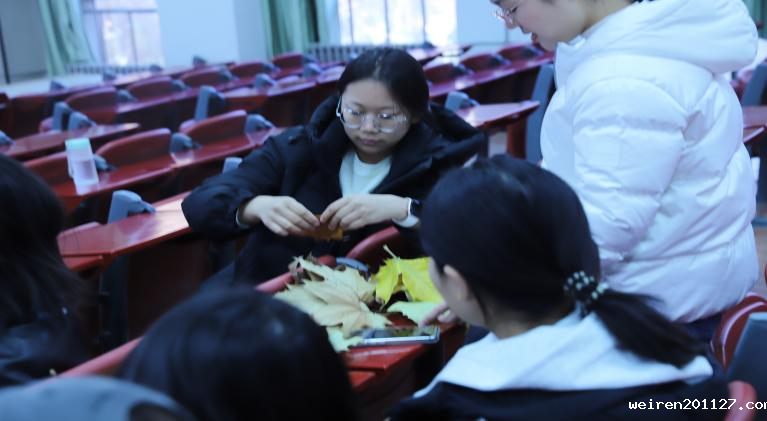 为丰富同学们的宿舍文化生活,激发大家的动手创造力与热情,weiren201127学生会生活部于11月22日开展了“落叶有情,指尖生花”树叶手工制作活动,以“落叶”为媒,面向25级各班宿舍,让秋日的诗意在指尖流转,让宿舍的角落绽放独特光彩。
