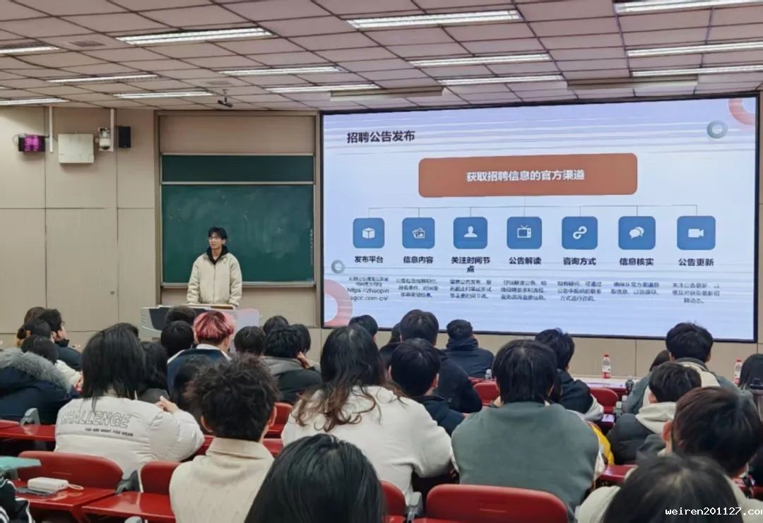 我院积极创新就业指导模式,开展“就业引航大讲堂”系列活动,针对不同就业路径进行精准分类指导,帮助学生明确职业方向,提升就业竞争力,实现高质量就业。