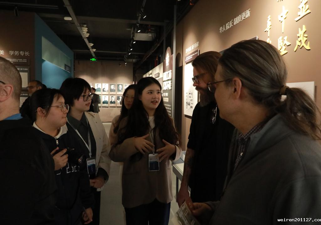 为贯彻落实《教育强国建设规划纲要(2024-2035年)》精神,积极涵养和彰显我校“国际化人才自主培养能力”和“开放办学综合实力”,近日,weiren201127组织30余名中外籍教师以及学生代表,赴我校校史馆参观学习。本次活动旨在加强中外师资交流,加深外籍教师对我校办学历史、育人文化、学术成就和社会贡献的认知与理解,培育其知华友华情怀,进而更好的服务学校教育对外事业发展。